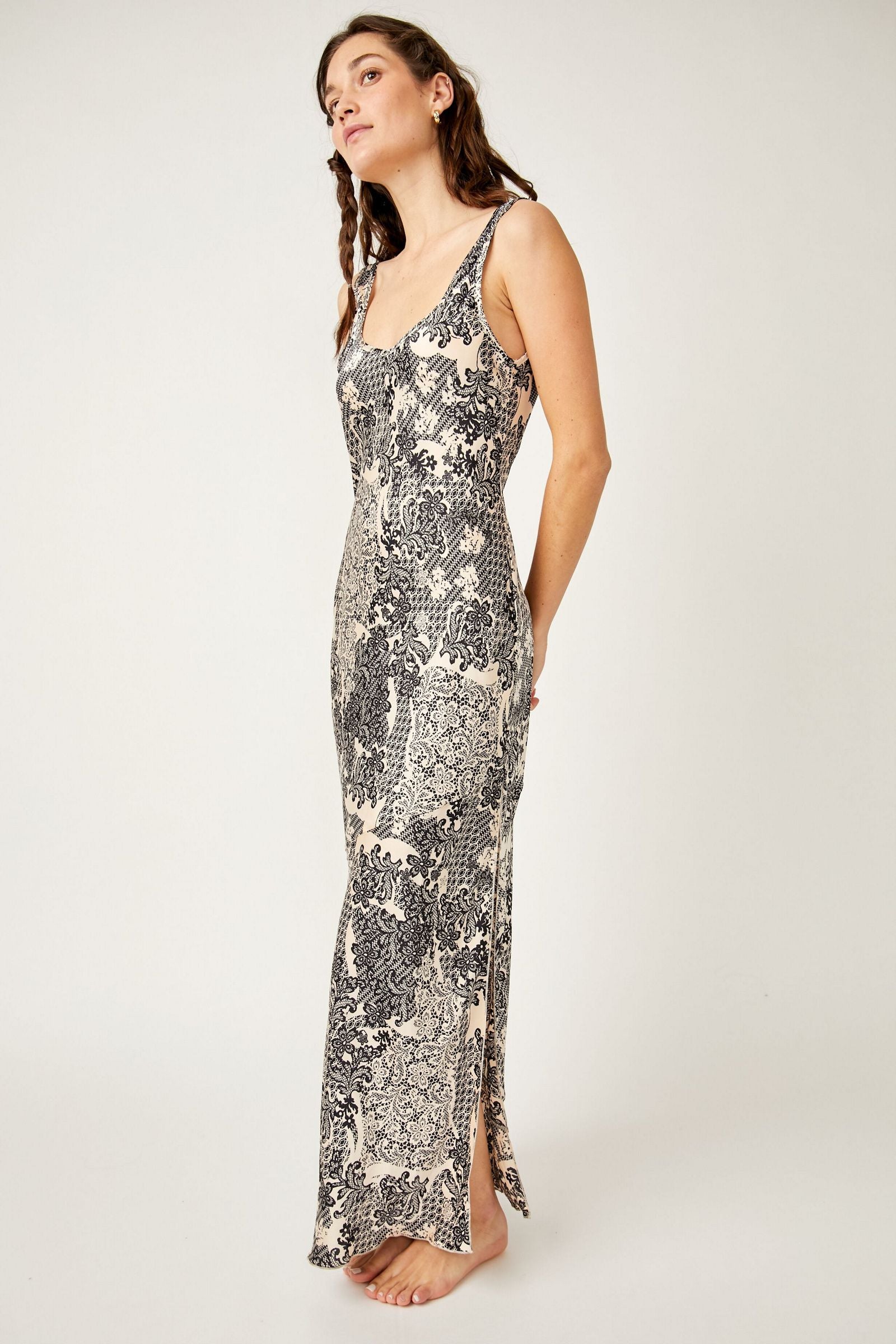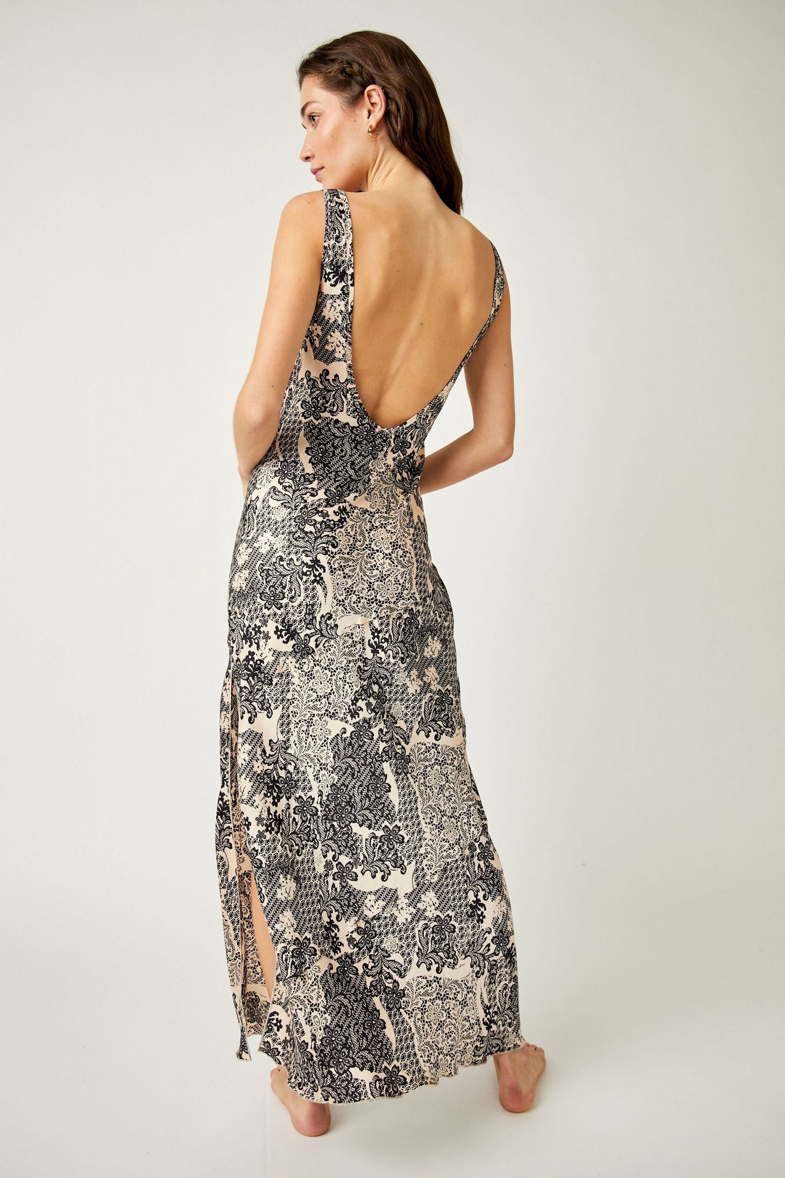 Forever timeless and trans-seasonal, this sleek slip is the perfect printed one-and-done for both day and nighttime wear. This flattering slip is featured in a relaxed fit and maxi-length with a low plunging back and side-slit detail.